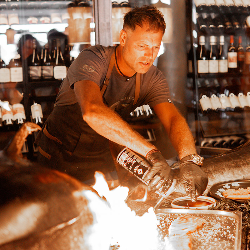 Vers van de graatStap binnen in de wereld van de vis tijdens onze spectaculaire Tuna Show bij Lemongrass. Samen met Arie Kuijt delen wij onze culinaire passie voor gastronomie en nemen we je mee op een unieke reis langs de mooiste smaken uit de zee. Voor je ogen wordt een 100 kilo wegende tonijn én diverse andere vissoorten vakkundig gefileerd, terwijl Arie zijn uitgebreide kennis en liefde voor het vak met je deelt. Proef de vis vers van de graat en alsof dat nog niet genoeg is, geniet je aansluitend van een 4-gangen diner, volledig geïnspireerd op de absolute versheid en kwaliteit van vis. De tuna show is ook te boeken voor uw bedrijfsevent, voor een exclusieve aanvraag neem contact op met d.vanwaasdijk@vigofamily.nl |